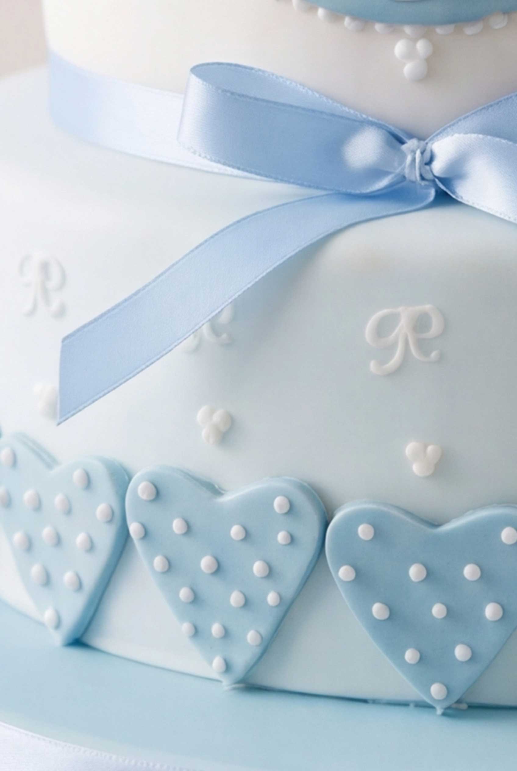 De taart is gemaakt met een combinatie van smetteloos wit en schitterend blauw fondant, wat resulteert in een charmant kleurenpalet dat de zuivere onschuld van een babyjongen weerspiegelt. De subtiele tinten geven deze heerlijke traktatie een elegante uitstraling.