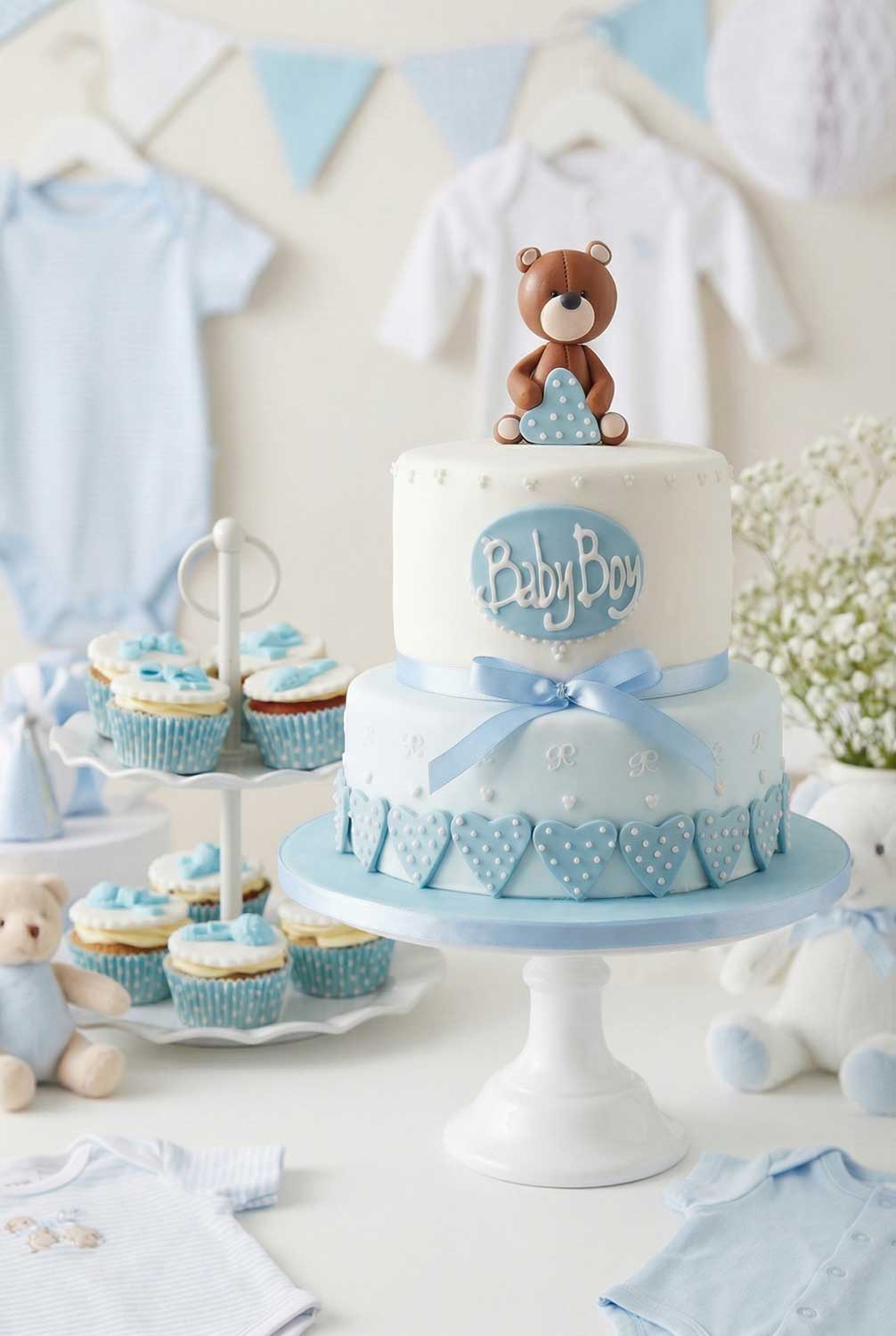 Onze luxe babyshower taart voor jongens is meer dan alleen een dessert; het is een kunstwerk dat de vreugdevolle gelegenheid eert. Het symboliseert de liefde en verwachting die gepaard gaan met de komst van een kostbare babyjongen. Bestel vandaag nog deze buitengewone creatie en maak van jouw babyshower een onvergetelijke ervaring vol zoetheid en schoonheid.