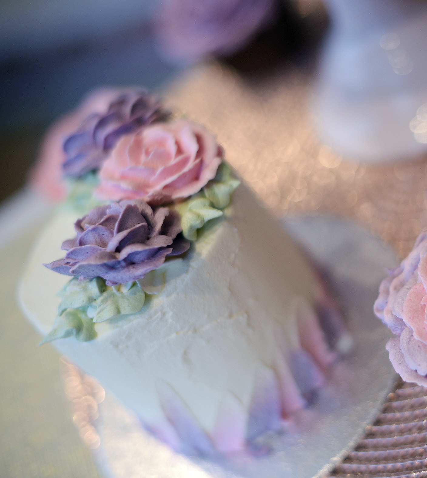 Mini cake voor 1-2 pers met botercreme bloemen in verschillende kleuren.