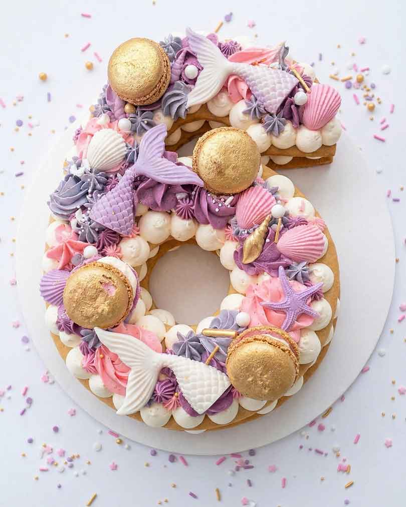 Vervolgens snijden we de cake in de gewenste letters of cijfers en brengen we het geheel tot leven met kleurrijke en feestelijke toppings: denk aan macarons, stukjes chocolade, vers fruit en mini-koekjes. Het resultaat? Een taart die net zo lekker smaakt als ze eruitziet!